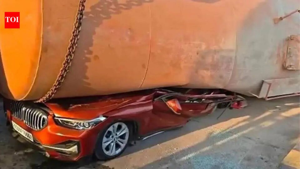 VIJAYAWADA: A fatal road accident at Keesara toll plaza in Kanchikacherla mandal of NTR district claimed the life of B Srinivasa Rao, a senior advocate from Hyderabad on Saturday after a fly ash tanker lost control and overturned onto his car. According to police, the accident occurred when the brakes of a 16-wheeled tanker reportedly failed while heading towards Hyderabad. The driver lost control near the toll plaza, causing the heavy vehicle to topple directly onto a BMW car passing through the stretch. The impact was so severe that the BMW was flattened under the weight of the tanker.Srinivasa was a resident of Yellareddyguda in Hyderabad. He was travelling alone in the vehicle at the time of the accident. Officials said the body was mangled due to the intensity of the crash. Rescue teams faced significant challenges in retrieving the body, as the tanker had to be lifted using cranes and earth-moving machines. The operation took considerable time before the wreckage could be cleared.Vijayawada police commissioner S V Rajasekhara Babu rushed to the spot and supervised the rescue efforts. He confirmed that only one person was in the car and that the accident was caused by loss of control of the tanker. State Bar Council president Vasireddy Prabhunath visited the accident site and expressed deep grief over the advocate’s death, describing it as a tragic loss. Colleagues remembered Srinivasa Rao as a lawyer who rose from student activism and was known for his commitment to public issues and justice. Police have registered a case and are investigating the circumstances leading to the accident.