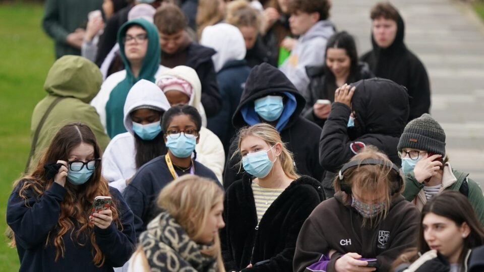 Students queue for antibiotics at the University of Kent in Canterbury. Pic: PA