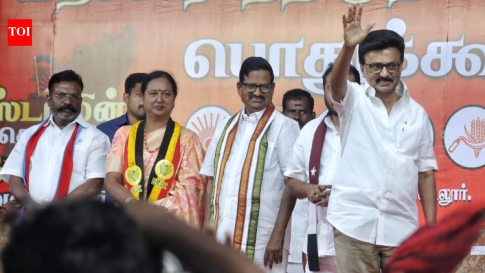 CUDDALORE: Tamil Nadu chief minister and DMK president M K Stalin made a clarion call for the formation of “Dravidian Model 2.0” govt after the 2026 assembly election.Sharing the stage with VCK president Thol Thirumavalavan and DMDK general secretary Premallatha Vijayakanth to exhibit the solidarity of the alliance, Stalin said under the current DMK regime, Tamil Nadu’s growth rate jumped from a dismal 0.07% during the previous AIADMK regime to a robust 11.19%, earning the state the moniker of “Superstar State” in global media.Recalling his deep friendship with the late ‘Captain’ and DMDK founder Vijayakanth, Stalin noted that Vridhachalam was the soil that first gave Vijayakanth victory in 2006. “Sister Premallatha has mentioned that she feels this alliance should have happened sooner. I agree. Better late than never. This is now the latest and strongest winning combination,” he said.He referenced a song written by the late chief minister M Karunanidhi for Vijayakanth’s film Makkal Aanaittal, urging voters to “think of the next generation” before casting their ballots. He said the party’s manifesto is the superstar of the alliance’s campaign.He unveiled a series of welfare guarantees aimed at homemakers, farmers and the youth. He said the monthly ‘Urimai Thogai’ (rights grant) will be increased from Rs 1,000 to Rs 2,000. Additionally, an “Illatharasi Scheme” will provide Rs 8,000 coupons for purchasing or exchanging home appliances.The breakfast scheme will be expanded from Class V up to Class VIII, benefiting an additional 15 lakh children. He announced that the financial aid under the ‘Pudhumai Penn’ and ‘Tamil Pudhalvan’ schemes would be hiked to Rs 1,500. The procurement prices will be hiked to Rs 3,500 per quintal for paddy and Rs 4,500 per tonne for sugarcane. Furthermore, 20 lakh modern electric pump sets will be distributed to farmers. Recognising Cuddalore’s vulnerability to natural calamities, Stalin promised enhanced compensation of Rs 25,000 per hectare for paddy and Rs 27,000 for long-term crops.Stalin did not mince words when criticising the Union govt and the AIADMK. He condemned Prime Minister Narendra Modi’s recent remarks that free bus travel for women (Vidiyal Payanam) reduces profits of metro rail. “This shows the Prime Minister doesn’t care about women’s advancement. If the NDA comes to power, they will stop this scheme,” Stalin warned.He accused AIADMK general secretary Edappadi K Palaniswami of surrendering Tamil Nadu’s rights to the BJP to escape investigations into corruption cases like the Gutkha scam and Kodanad heist. He mocked the AIADMK, saying it is no longer “Anna DMK” but has turned into “Amit Shah DMK”.He listed specific infrastructure projects completed and planned for the district, including a new bridge across the Gadilam river, desilting and strengthening of the Perumal lake in Kurinjipadi, promoting Pichavaram as a popular tourist destination and extending modern cancer treatment facilities at the Cuddalore govt medical college hospital.