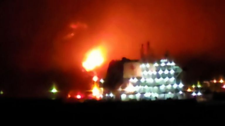 A tanker is seen listing following the attack in Iraqi waters. Pic: Reuters