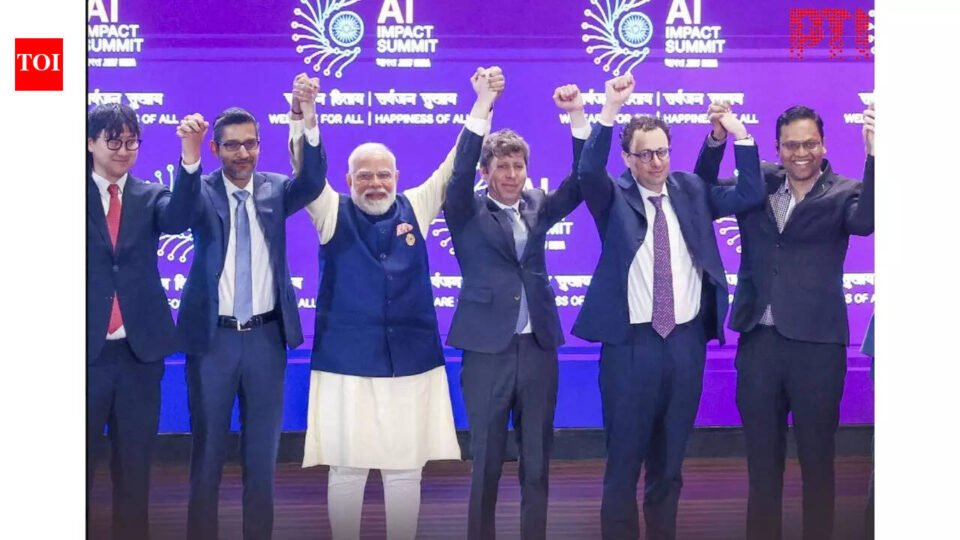 PM Modi stood at the centre of the group, Pichai stood on his right and Altman on his left. Amodei, who previously worked at OpenAI before co-founding Claude-maker Anthropic, stood next to Altman. As the leaders posed for a group photograph, Modi and several other leaders raised their hands.