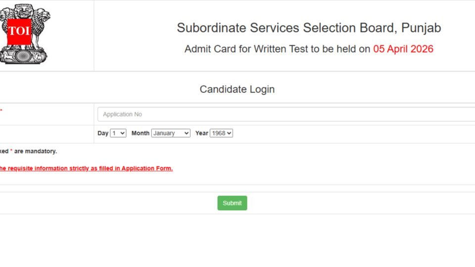 The Punjab Subordinate Services Selection Board (PSSSB) has officially released the Group D Admit Card 2026 on its website. Candidates who have registered for the recruitment exam can now download their hall tickets from the official portal — sssb.punjab.gov.in. The admit card is a mandatory document for appearing in the examination and contains key details such as exam date, reporting time, and centre address. Applicants are advised to download their admit cards well in advance and verify all details carefully to avoid last-minute issues on the exam day.